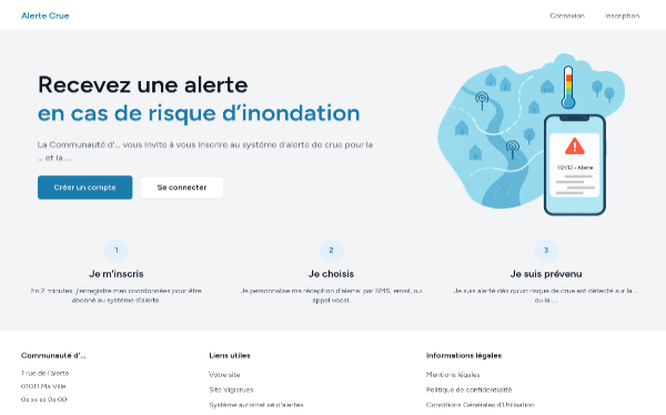 La solution numérique pensée pour les collectivités, simple et fiable, pour prévenir vos habitants en cas de risque de crue.